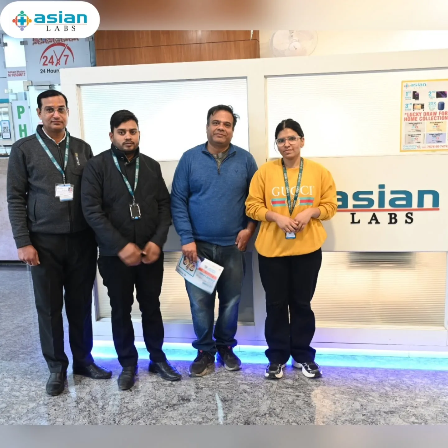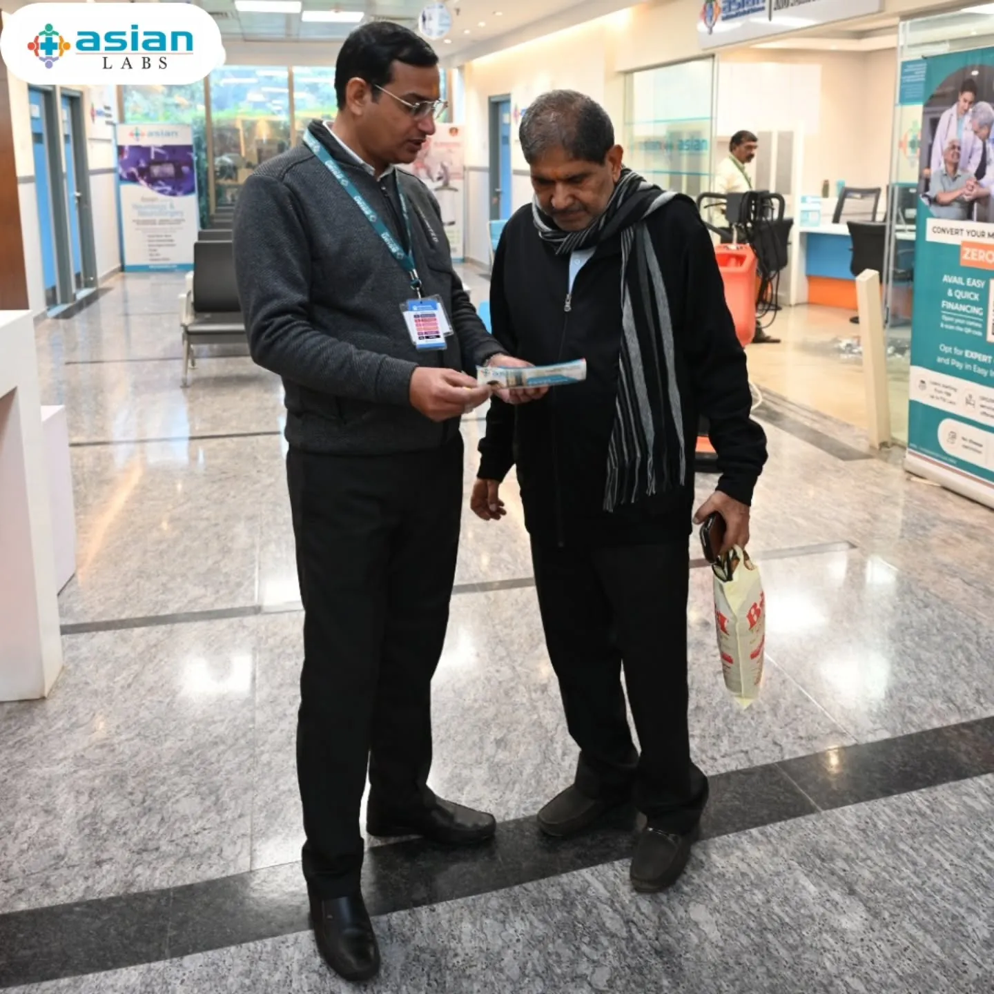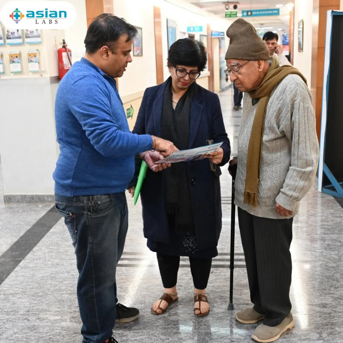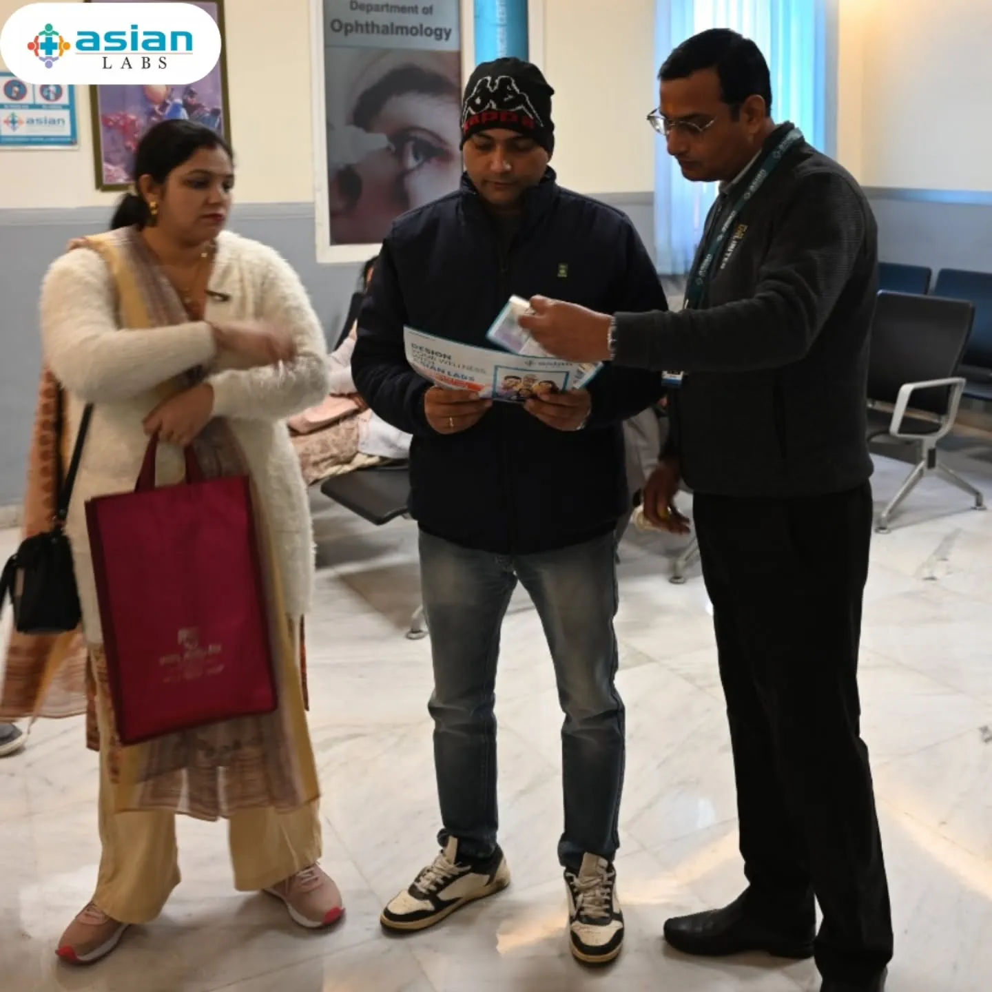 During the Free Health Checkup Camp at Asian Institute of Medical Sciences, Faridabad, the Asian Labs team actively engaged with visitors, creating awareness about preventive health and the importance of timely diagnostic screening.